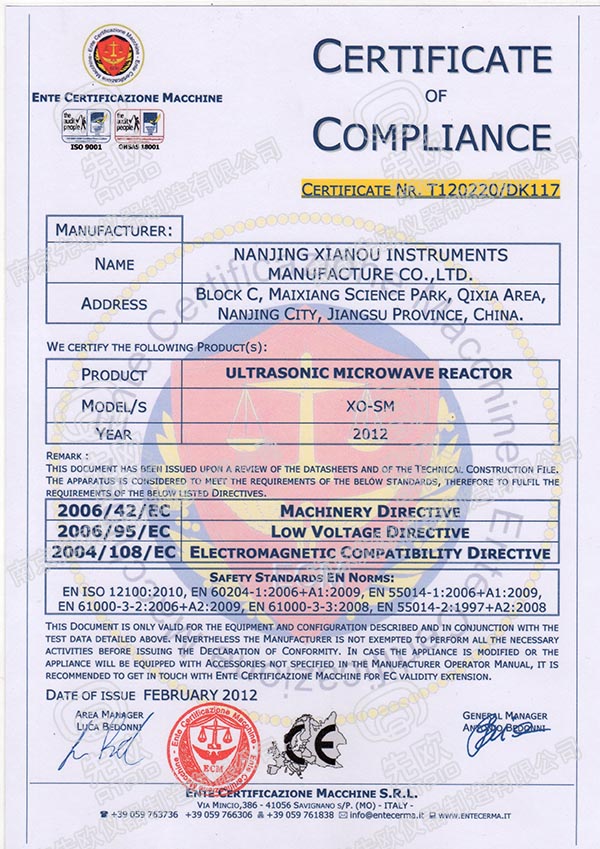 先歐超聲波微波產品通過歐盟電氣安全CE認證